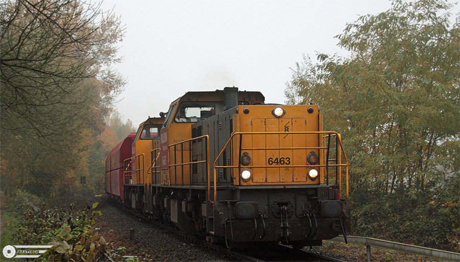 6463 und Schwesterlok am 1.November 2010 gegen 14:20 Uhr in Ratingen (in Höhe des ehemaligen Bahnübergangs Lintorfer Strasse) auf dem Weg nach