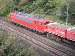 155 249 war am 22.Oktober 2004 etwa in Höhe von km 16,6 zwischen Ratingen West und dem Abzw. Tiefenbroich auf der Fahrt Richung Duisburg mit einem Schaden liegengeblieben. Nach ungefähr 45 Minuten kam eine Lok der Baureihe 294 schliesslich zu Hilfe. Nach einigen Minuten der Verständigung zwischen den Lokführern schob die hinzugekommen Lok 155 249 | ![]() |