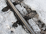 | Von Duisburg Wedau bis zum Bahnübergang "An den Banden" in Ratingen-Lintorf zieht sich die Spur einer Entgleisung, die ein Güterzug am 29.12.2010 hinterlassen hat (Dank für die Information an Thilo Angelkorte und "Fals Lullu). Da mir weiter nichts näheres bekannt ist, folgendes aus Beobachtungen vom 02.01.2011. Für mich sichtbar im Schnee: Ab Kurve bei km 8,8 im Richtungsgleis Düsseldorf verläuft im Schnee deutliche Spuren rechts neben den Schienen. Am Bahnübergang bei km 10,83 wechselt diese Spur nach links neben den Schienen. Bei km 11,8 erfolgte den Spuren nach wieder die Eingleisung. Auf dem gesamten Stück zwischen Km 8,8 und 11,8 sind Beschädigungen an den Betonschwellen sichtbar. Einige Aufnahmen vom 02.01.2011 >>KLICK. Güterverkehr war nach "Hörungen" der letzten Tage sehr dürftig. Kalkzüge ins Angertal fahren ab Duisburg-Wedau bis zur Abzweigstelle Tiefenbroich im Gleis der Gegenrichtung. | ||||||||