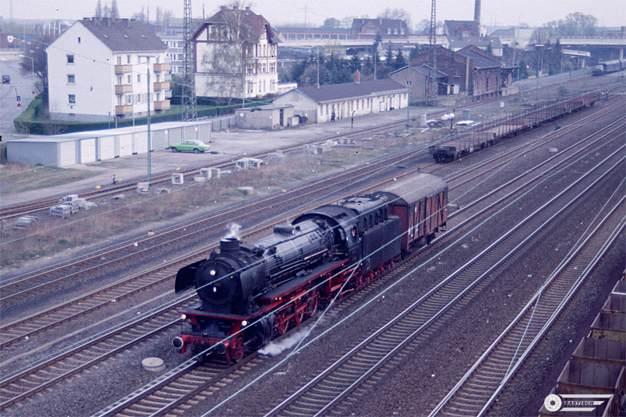 Nach Aufhebung des Dampflokverbots bei der DB, gehörte die Westbahn mit zu den ersten Strecken, auf denen wieder Dampfloks fahren durften. Hier 41 360 am 16.04.1988.