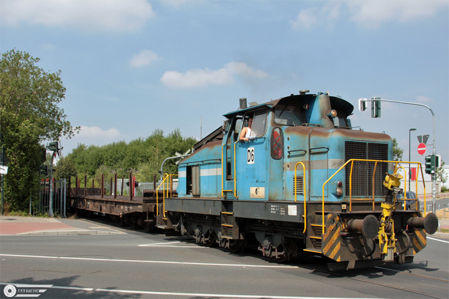 | Kurz vor Ende der Schicht macht sich D6 am 11.Juli 2010 wieder auf den Weg vom Verschiebebahnhof zum Werk | ||