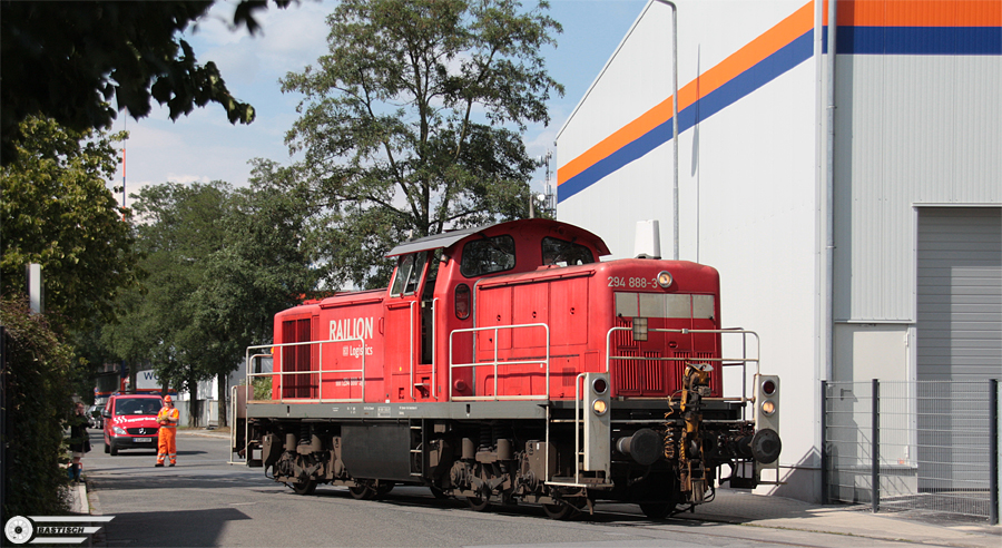 | 294 888 verlässt erstmal das Industriegebiet (quert gerade die Halskestrasse) | ||