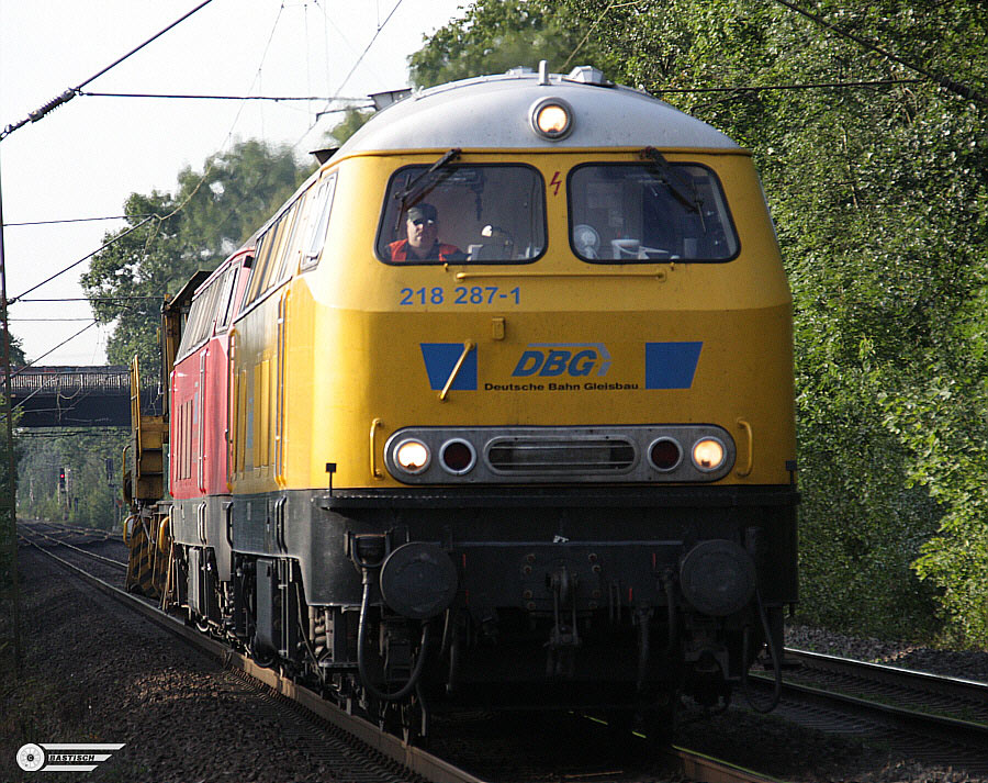 | 31.07.2009 / 19:30 Uhr - 218 287 mit 218 261 und Baumaschine Fahrtrichtung Düsseldorf |