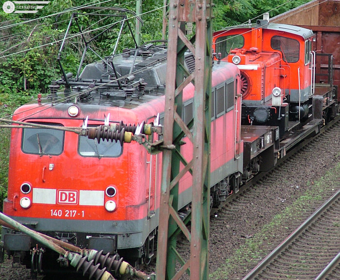 | 7.September 2008 - Eigentlich wollte ich "Gleiswechselbetrieb" fotografieren. Wenn man dann schon ungünstig steht, dann kommt prompt mal was Ausgefallenes. 335 163 auf Transportwagen wird mitgeführt. | |||||||