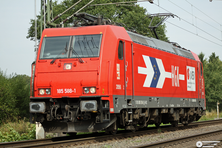 | 15.August 2013 - 9:19 Uhr - 185 588 (HGK 2056 mit Halterkennung RHC für RheinCargo) Fahrtrichtung Duisburg durch Lintorf |