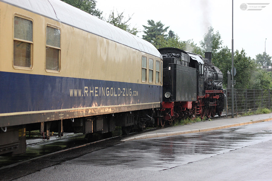 | Am Tag der Jubiläumsfahrt hat es praktisch vom frühen Morgen bis in die Nacht geregnet. Die Aufnahmen in Tiefenbroich enstanden zwischen 20:10 und 20:50 Uhr. Hier noch einige Ausschnitte des Zuges an der Halskestrasse stehend. | ||
