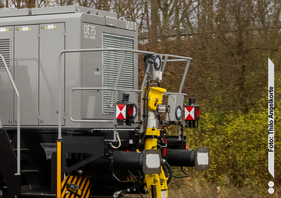 Wer zu spät kommt, den bestraft die geschlossene Schranke. ThyssenKrupp Lok 544 überführt