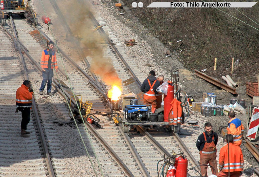 Und ein Blick von der Brücke der Jägerhofstrasse auf die Gleisbaustelle