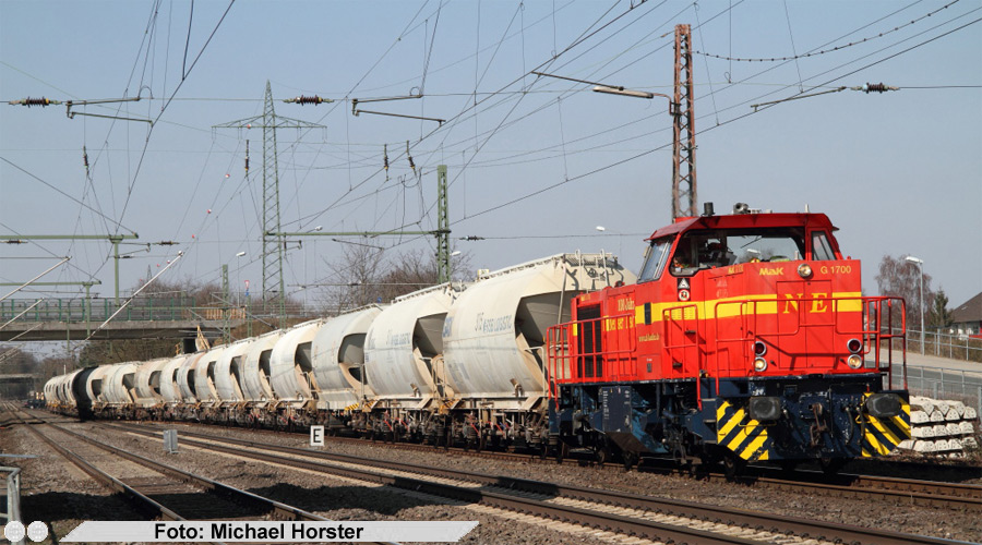 Etwas zum Kalkverkehr vom 2.April: 13:51 Uhr TKSE Lok 543 mit Kalkzug an der Abzweigstelle Tiefenbroich