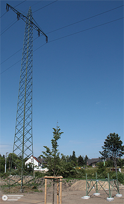 | Der neue Mast 4134 im Zustand vom 01.06.2011 | Mast 4132 nahe der Tiefenbroicher Strasse | ||