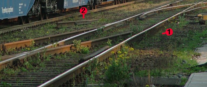 1 - abgelegte Weichenzunge und kurz darunter der verbliebene Rest