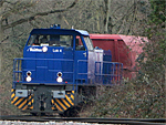 Fragezeichen: Am 26.August 2016 fährt Lok 403 der Dortmunder Eisenbahn mit Leerwagen nach Rohdenhaus. Wieso, weshalb, warum ? KLICK mehr dazu | ||||
