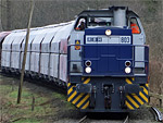 | Holzverladung in Rohdenhaus Am 14. und 16. Oktober wurden Holzzüge durch die Bocholter Eisenbahn von Rohdenhaus über die Angertalbahn bis Essen Hbf gefahren (Quelle www.bocholter-eisenbahn.de) Am 12.November wurde 202 271 mit einem Leerwagenpark in Essen auf dem Weg nach Rohdenhaus gesichtet und am 19.November befand sich die Lok im Anschluss der Fa. Rheinkalk (Quellen: DSO). |