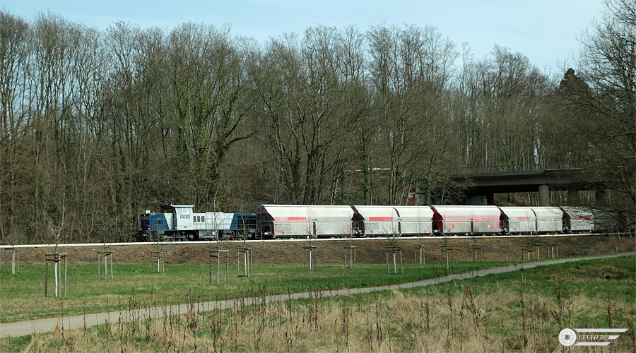 20.03.2026 - RBH 803 hinter RBH 811 mit Kalkzug an der Brücke der Mülheimer Strasse in Ratingen