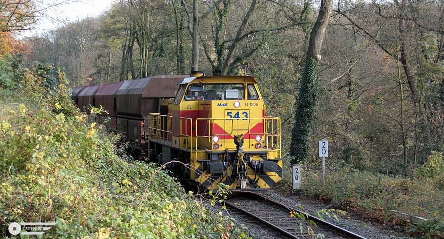 15:21 Uhr - EH 543 mit Kalkzug auf dem Rückweg nahe dem "Blauen See" in Ratingen